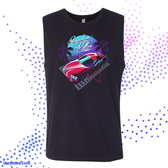 Get in loser, we're going to Paradise. Burn some metaphysical rubber behind the wheel of Burn Parliament in this muscle tee inspired tank top from our official Paradise Killer collection.